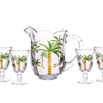 Conjunto Jarra E Taças Palm Hand Painting 7 Peças